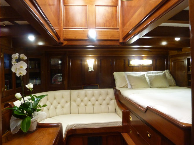 Accommodates 8 guests in 4 cabins (three double cabins and one with upper -lower beds suitable for kids)